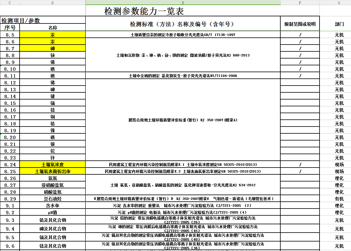 包括甲醛、粉尘、氨、苯系物等有机物、挥发性有机化合物含量、铅、锡等金属、氯化氢等酸性物、土壤对PH值、水分、砷、铅、镉、铜、锌、汞、铬 等等。