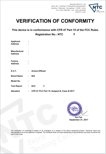 FCC ID证书样本: