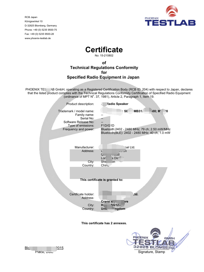 说明:1.所有递交的文档建议为日文文档,英文文档也可被接受。测试报告可以用当地测试机构所用语言。